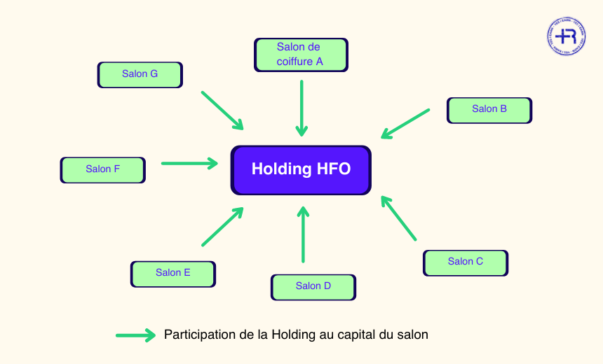 Estelle a lancé son premier salon de coiffure dans sa ville natale, il y a 5 ans. Grâce à sa connaissance du métier, des clients et de la région, elle décide d’ouvrir de nouveaux salons. Au fur et à mesure, les salons “Estelle Coiffure” s’implantent sur le territoire. Afin de gérer la croissance de son activité, d’harmoniser le fonctionnement de ses salons et d’optimiser les ressources, Estelle a créé une société Holding : “Hair Force One” (que nous appellerons “Holding HFO”).