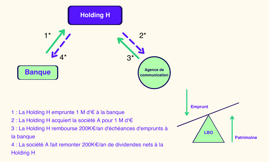 Pourquoi parle-t-on d’effet de levier ? Eh bien parce que dans le cas d’un LBO, la holding va augmenter la valeur de son patrimoine grâce à l’emprunt bancaire et aux avantages du régime mère-filiale :